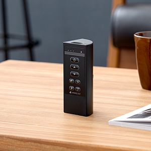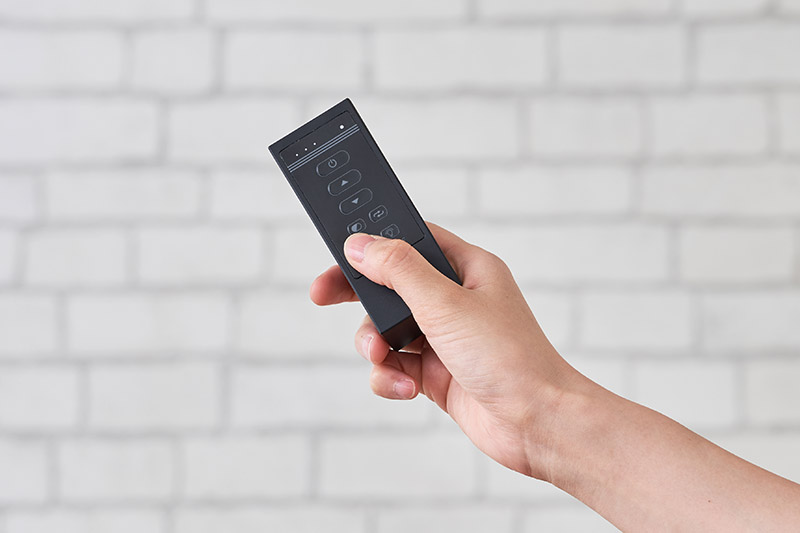 JAVALO ELFのロゴをモチーフにした個性的でスタイリッシュなリモコン。全ての操作もこれ一つで。