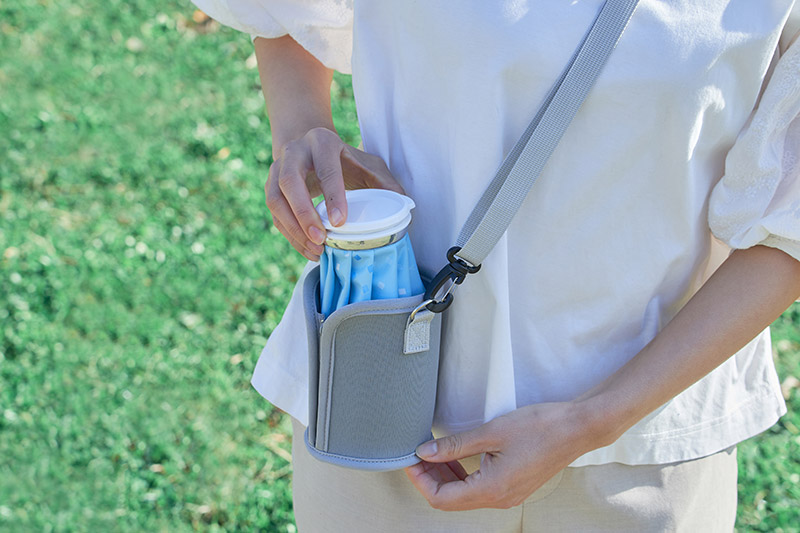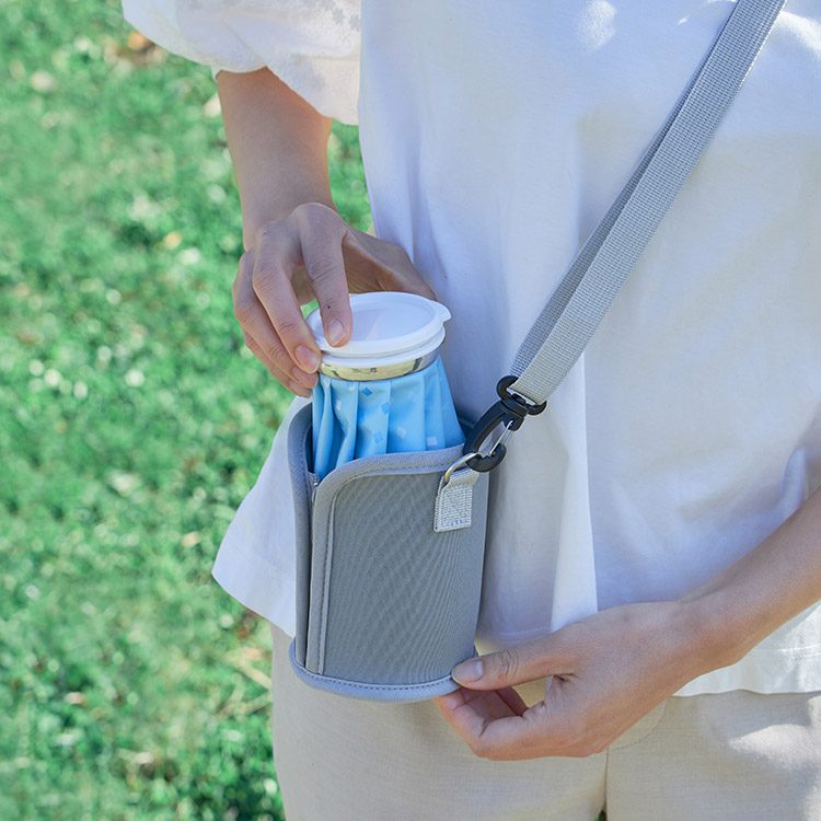 氷のうの結露でバッグの中が濡れるのを防ぐ専用ショルダーケースを付属。手軽に持ち運べ保冷力もアップするため便利です。