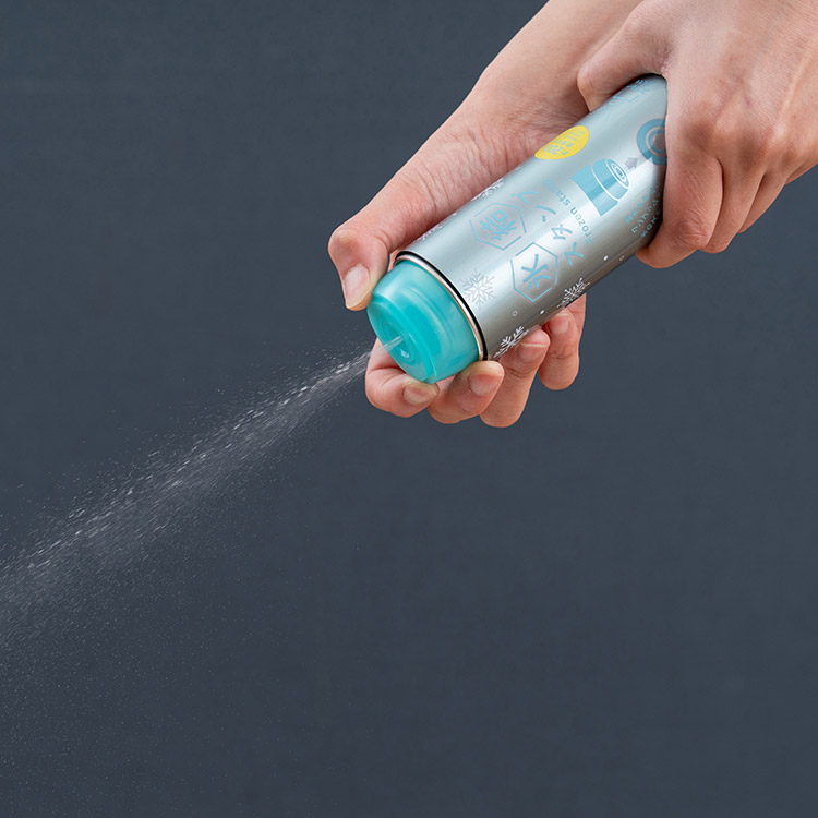 水で濡らしたタオルにプッシュするだけで瞬間氷タオルに!水で濡らした箇所を氷結するため、無臭で衣類もシミになりにくい仕様です。冷却スプレーとしても使用でき、服の上からの噴霧で広範囲を瞬時に冷やします。事前に冷やすなどの準備が不要で、携帯すれば冷感を得られるため、レジャーやアウトドアなどにもおすすめ。炎天下で熱くなった自転車のサドル、公園のベンチを冷却するという使用方法も可能です。