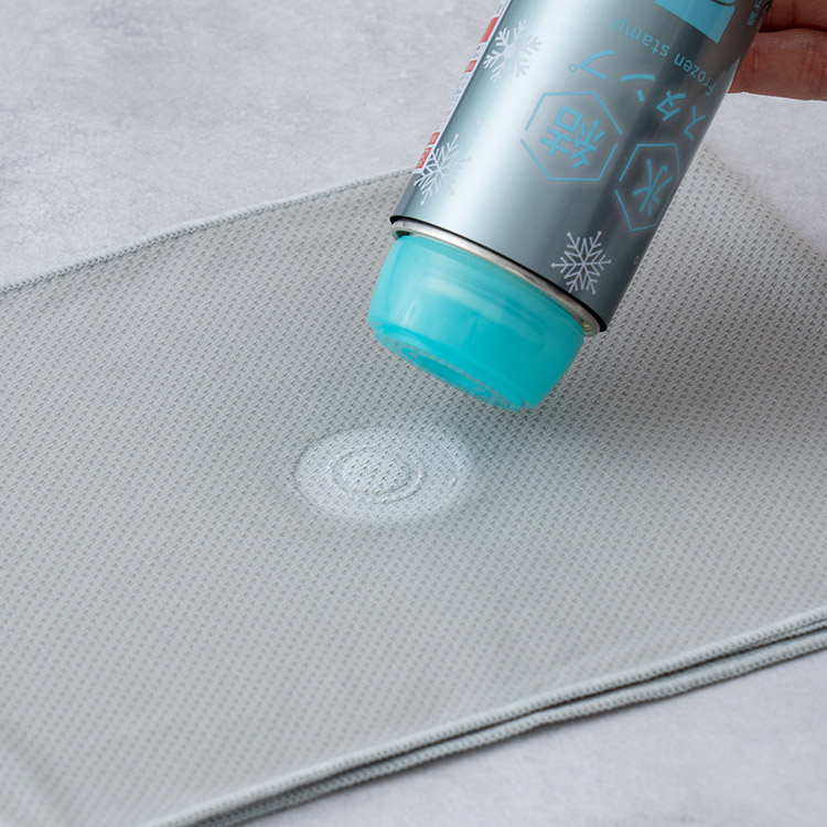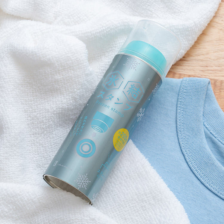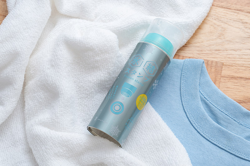 氷結スタンプの氷は余計な化学物質が入っておらず、無香料・界面活性剤不使用で環境にも優しい設計。濡らしたタオルの水分を凍らせる仕様のため、衣類やタオルもシミになりません。