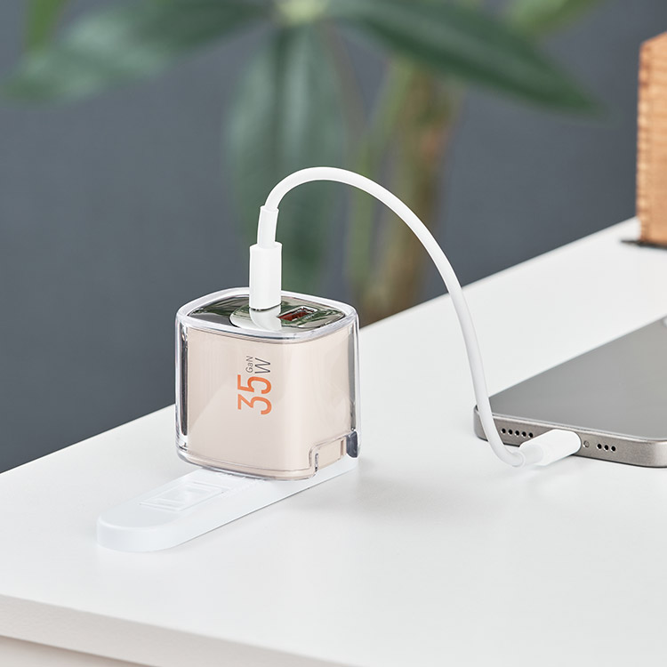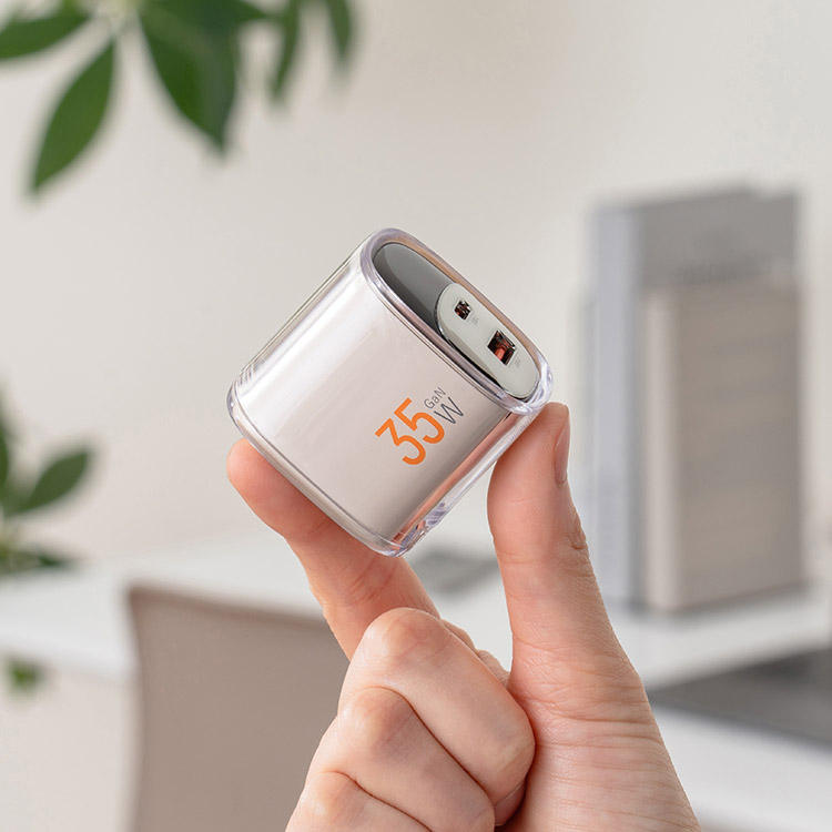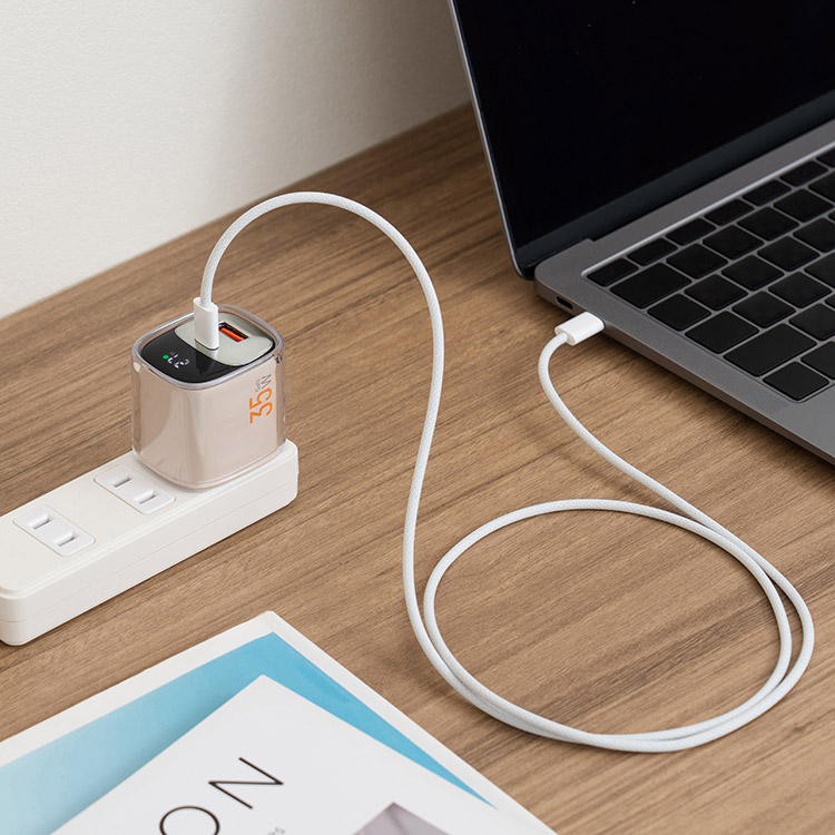 GaN(窒化ガリウム)を採用し、コンパクトながらハイパワー充電が可能な急速充電器。USB Type-Cポートを1つとUSB-Aポートを1つ、計2ポートを搭載。小型で軽量であることに加え、USB Power Delivery(パワーデリバリー)とQuick Charge(クイックチャージ)に対応しており、お使いのノートパソコンやスマートフォン、タブレットなどのデバイスに対し高速充電が可能です。※本製品のUSB Power Delivery最大出力は35Wです。