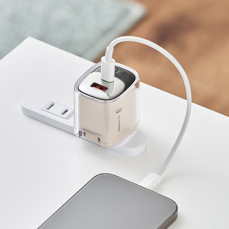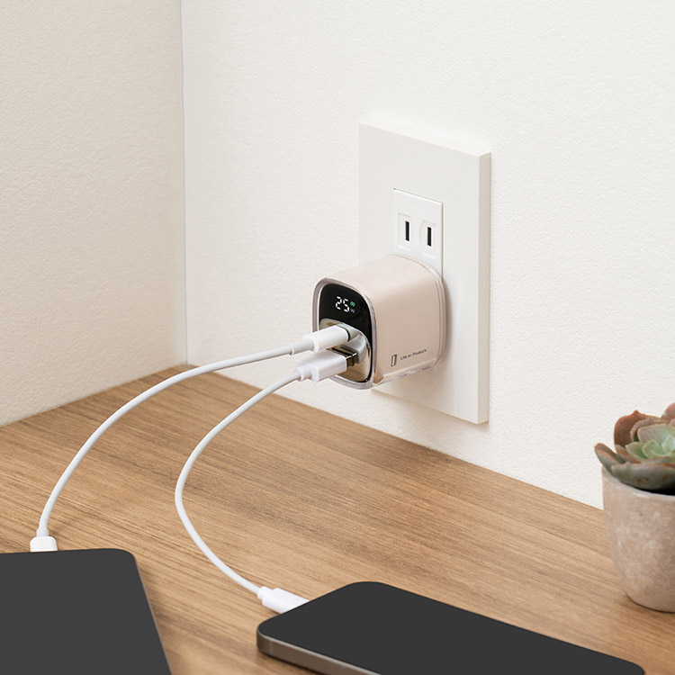 USB Type-CポートとUSB-Aポートをそれぞれ1つずつ搭載。最大2台のデバイスを同時に充電することが可能です。
