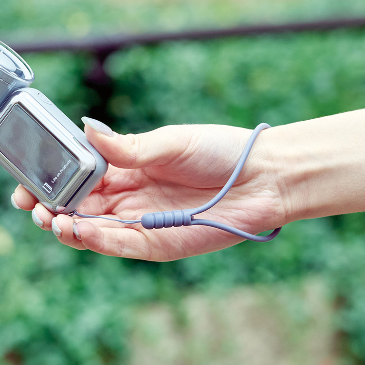 移動中や使用時での落下や紛失を防ぐ、ハンドストラップ付き。手首に掛ければ即使えて便利です。