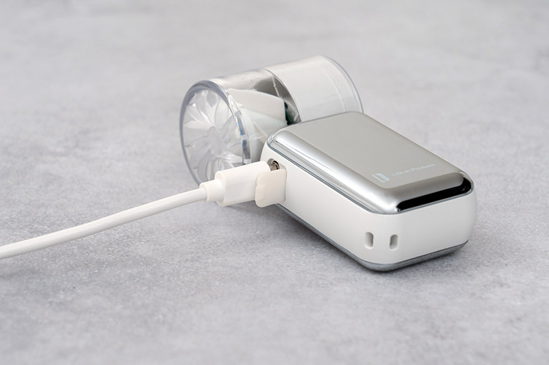 ファンの充電口にはゴミやホコリ、水滴などの侵入を防ぐカバーがあるため、屋外での使用も安心です。※防水仕様ではありません。