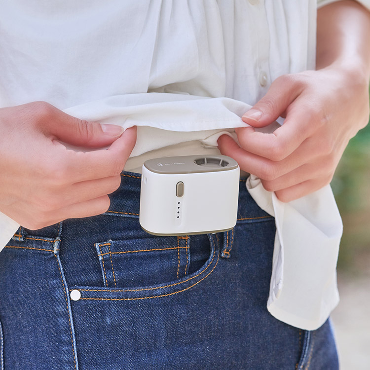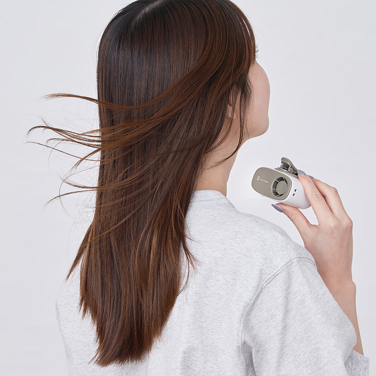 本体のクリップをベルトやボトムスに挟めば、トップスの中に直接涼しい風を送ることができます。服の中の不快な暑さや汗を吹き飛ばし快適に。