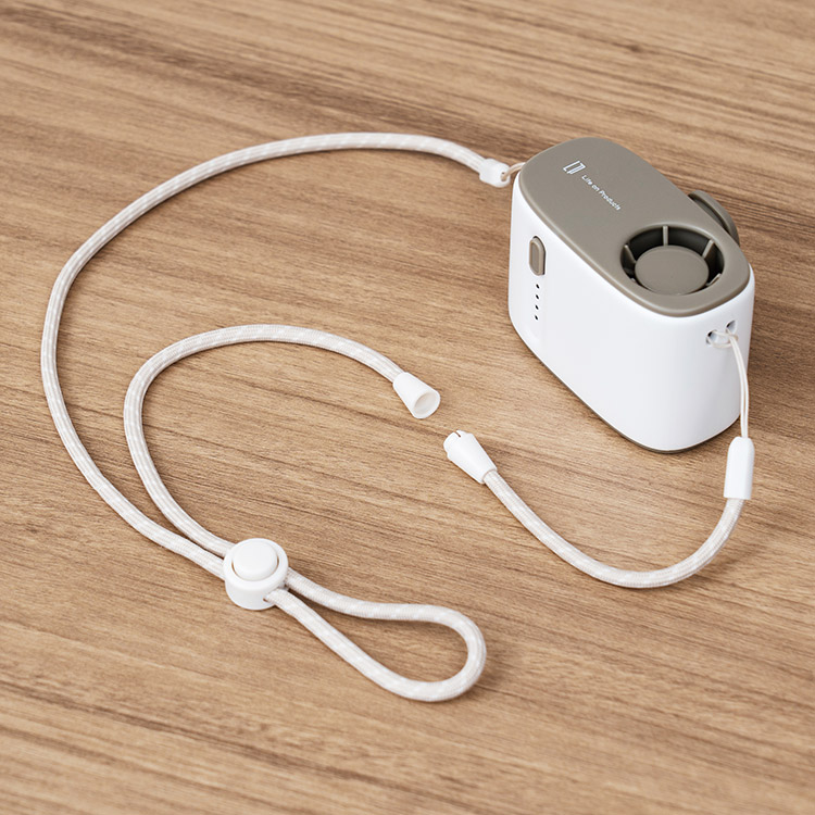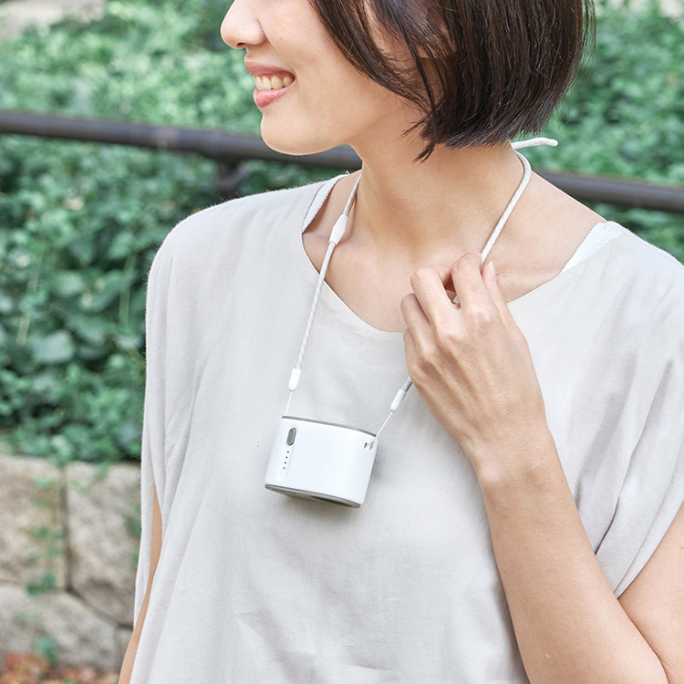 ベルトやボトムスに挟んで服の中に直接送風!パワフルな風が吹き抜け不快な汗を速乾し、猛暑日も涼しく快適に。手のひらサイズのコンパクトな本体は、装着しても目立たず邪魔になりません。付属のネックストラップの使用でハンズフリーとしても活用OK。シーンに応じてご使用いただけます。