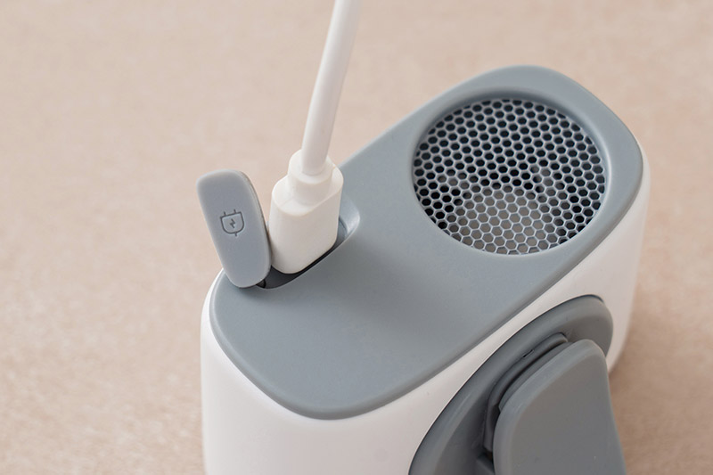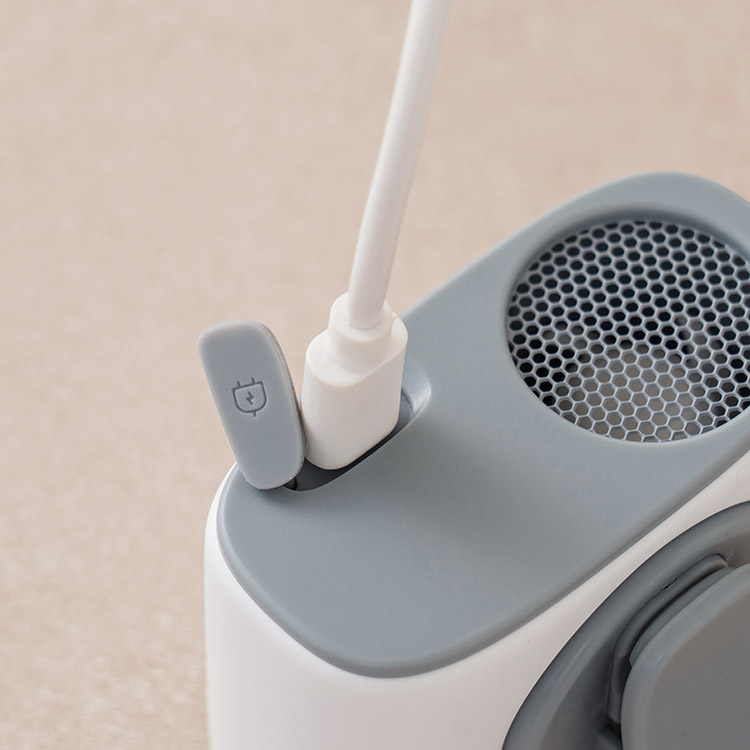 ファンの充電口にはゴミやホコリ、水滴などの侵入を防ぐカバーがあるため、屋外での使用も安心です。※防水仕様ではありません。