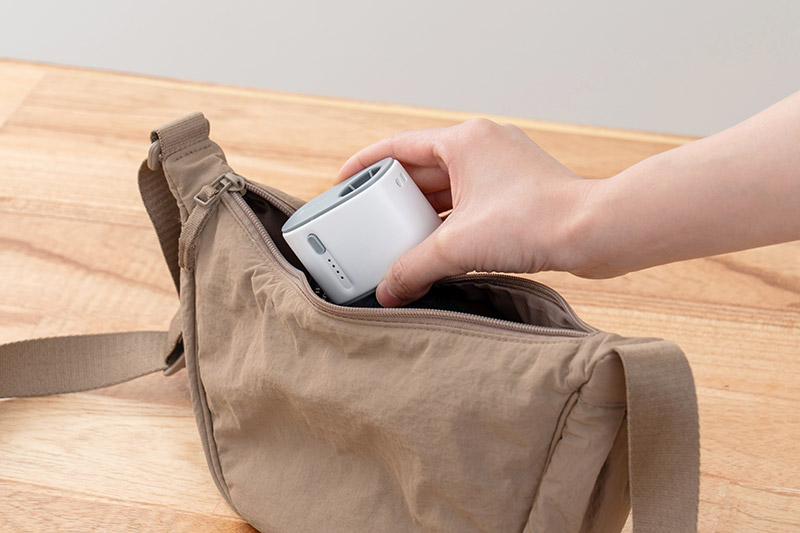 小さなバッグはもちろん、ポケットにも収納できるコンパクトサイズで、持ち運びにも便利です。