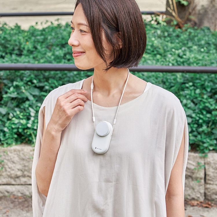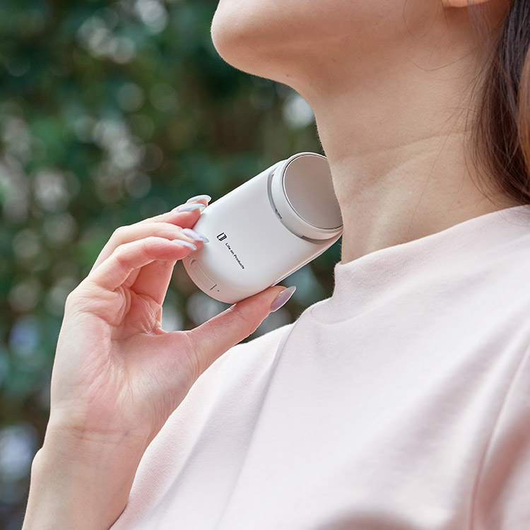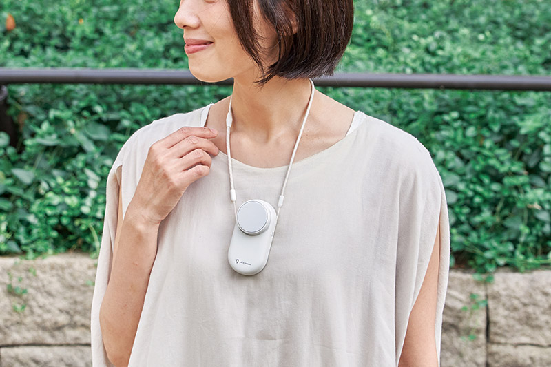 襟元に装着し、服の中に直接送 する爽快さで人気の襟エアーファンに、冷却プレート付きが登場。クリップで襟元に留めるだけの手軽さで、様々なタイプの洋服に装着できます。服の中にこもった熱や汗はダイレクト送風で快適に。猛暑でほてった肌には、冷却プレートをあてて急冷し瞬間リフレッシュ!これ1台で冷感×涼感を得られます。付属のネックストラップでハンズフリーでの使用も可能。