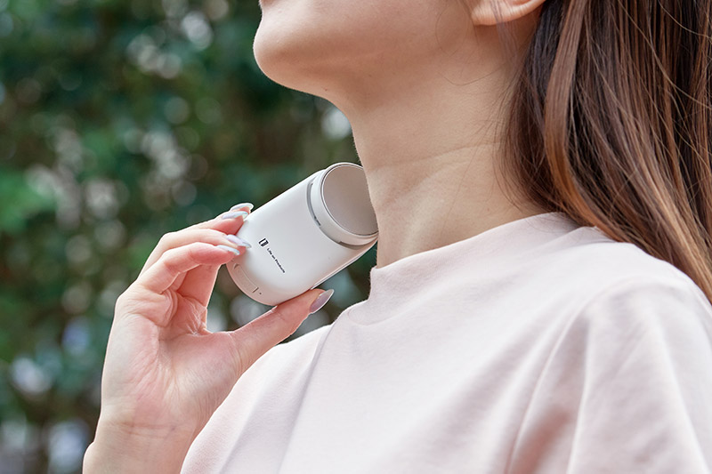 真夏日でも冷感&涼感を得られる冷却プレートを搭載。首や手首などに直接冷却プレートをあてると、効率的に熱を帯びた箇所を冷やすことができます。