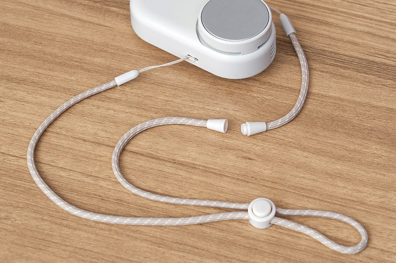 ストラップに強い負荷が一時的にかかるとパーツが分離。万が一の時も首にストラップが巻き付きにくい安全仕様です。