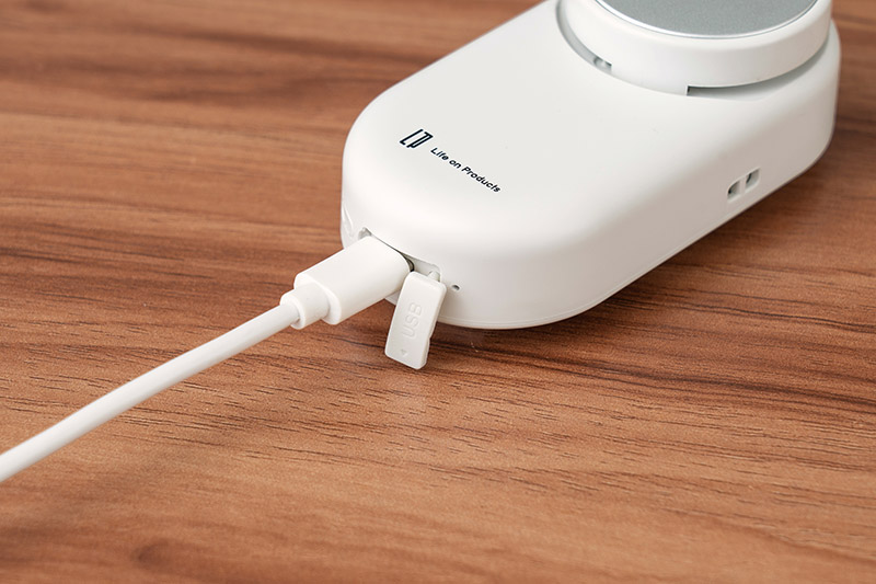 ファンの充電口にはゴミやホコリ、水滴などの侵入を防ぐカバーがあるため、屋外での使用も安心です。※防水仕様ではありません。