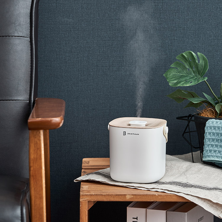 丸みのあるボックスデザインと、天面にあしらったリアルな木目柄が目を惹く充電式加湿器。美しい木目柄は、高精細な意匠表現技術をもつ大日本印刷株式会社との協業で実現しました。ナチュラルなレザー調ハンドル付きのため、給水時の持ち運びも便利です。コンパクトなサイズ感ながらタンク容量は650mlあり、使い勝手も◎。ミストは連続モードと間欠モードの2種類あり、お部屋の湿度やシーンに合わせて使い分けが可能です。
