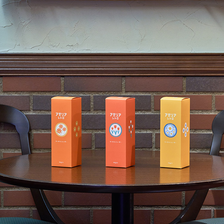 普遍的なかわいらしさを持つアデリアレトロ。その魅力を詰め込んだリードディフューザーは、大切な方へのギフトとしてもおすすめです。