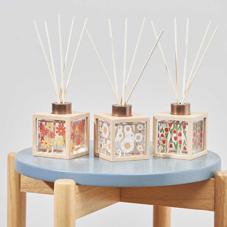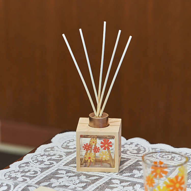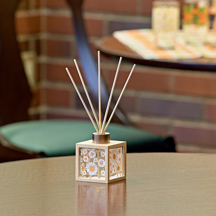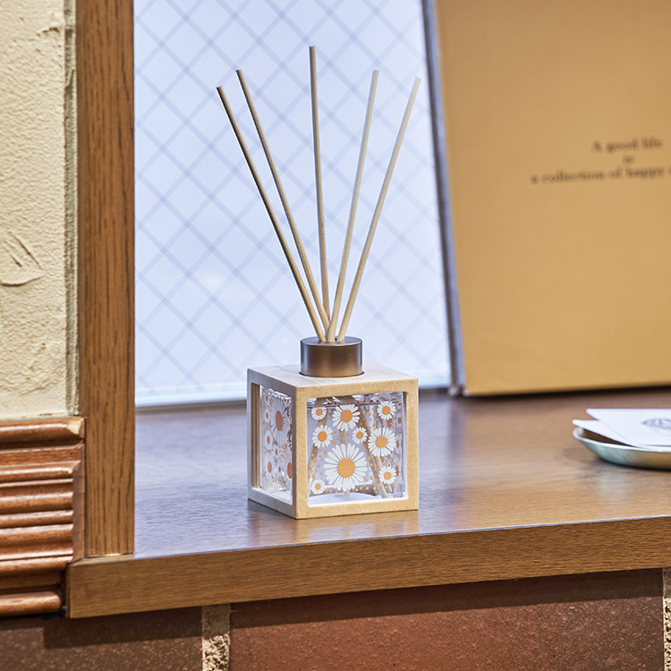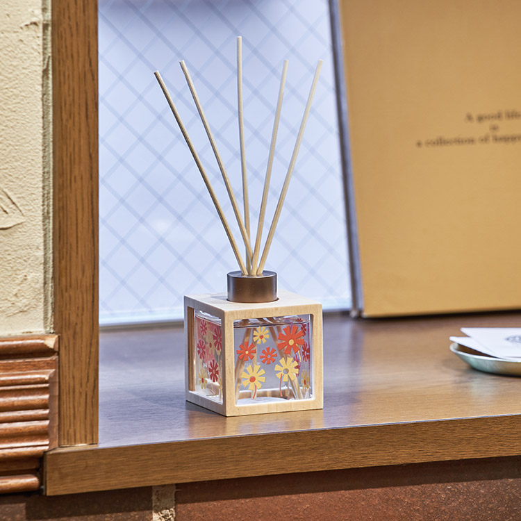 ウッドフレームが付いたナチュラルなボトルは、置くだけで目を惹くインテリアアイテムに。コンパクトサイズのため、どこでも香りをお楽しみいただけます。