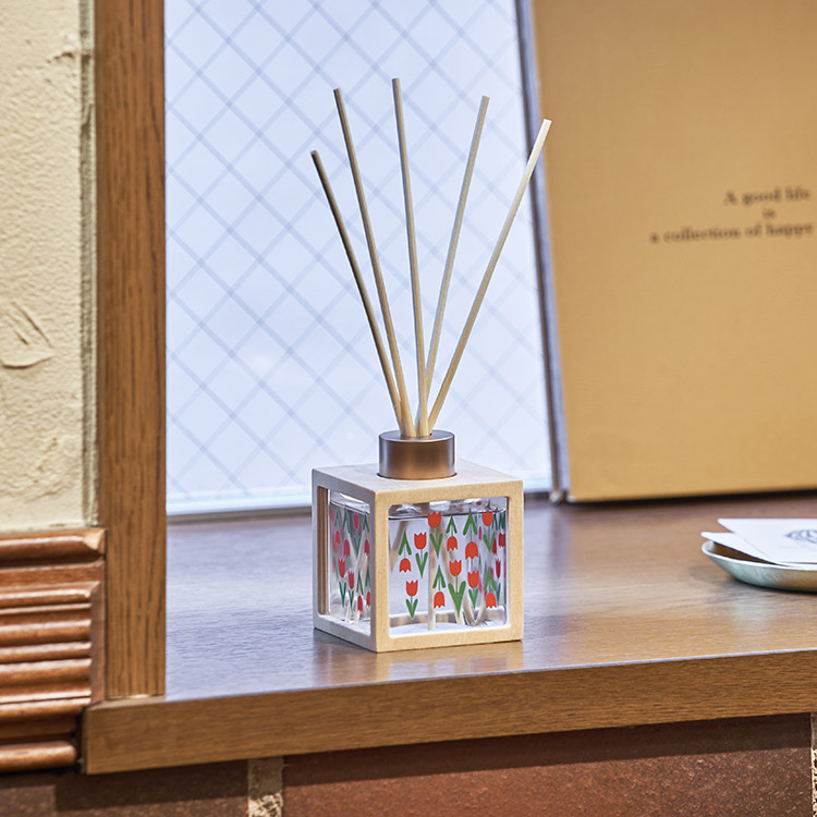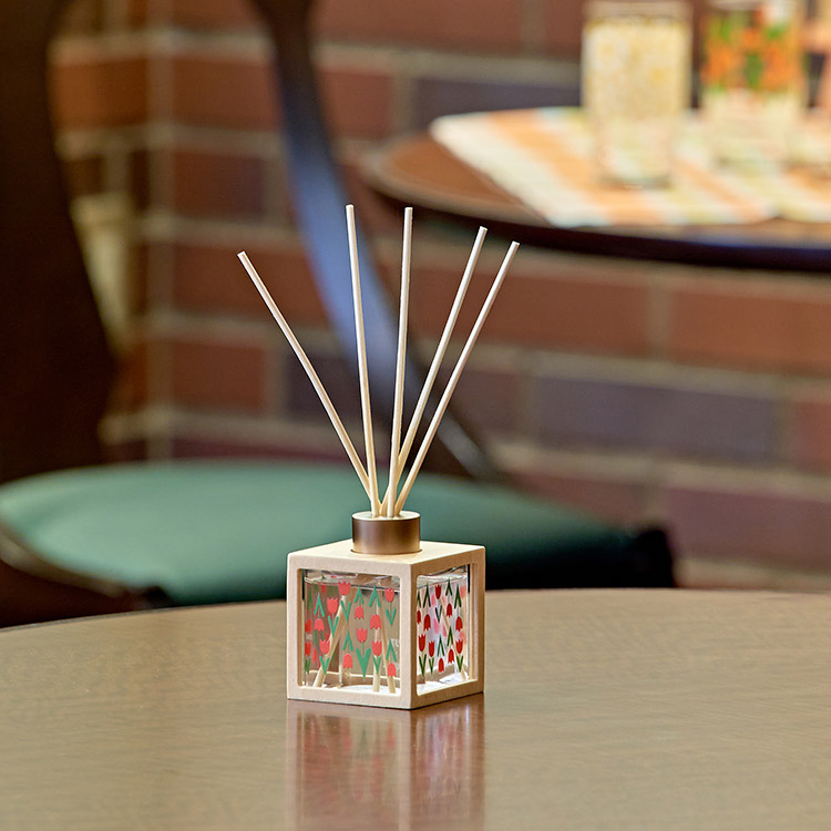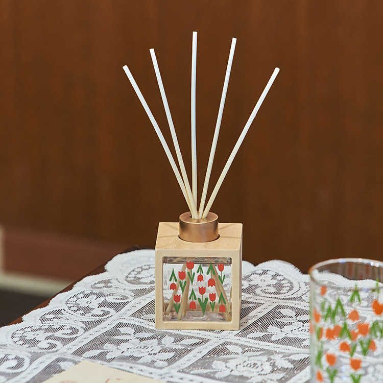 懐かしさとかわいらしさが詰まった昭和レトロの人気グラスウェア「アデリアレトロ」とmercyuがコラボレーション。アデリアレトロの人気モチーフである「コレック」「花ざかり」「アリス」をあしらった、キュートなボトルが魅力です。香りは花モチーフのイメージに加え、季節も感じる仕上がりに。デザインを引き立てるボトルのウッドフレームは、ナチュラルでお部屋のアクセントにも。使い切ったボトルは一輪挿しとしてのご使用もおすすめです。