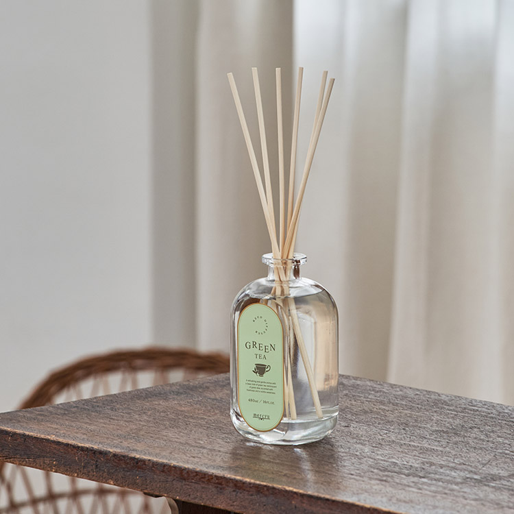 ボトルサイズは大きすぎないものの480mlの大容量で、約6ヶ月間香りを楽しめるコスパの良さも魅力。お茶の穏やかな香りで、心地よい毎日をお過ごしください。