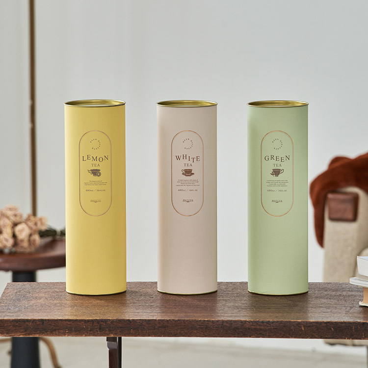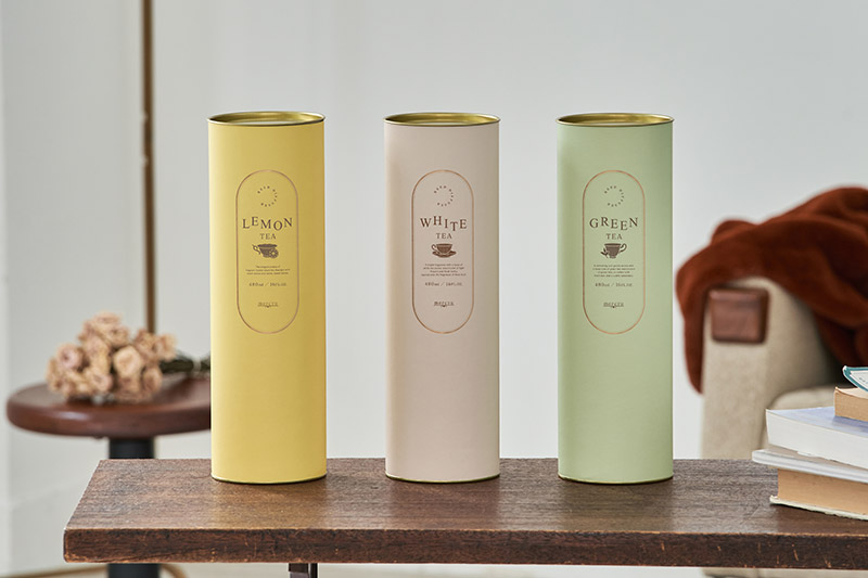 ティータイムからイメージされた円筒型のパッケージは、ギフトにも喜ばれそうな目を惹くデザイン。ユニセックスで手に取りやすい仕上がりに。