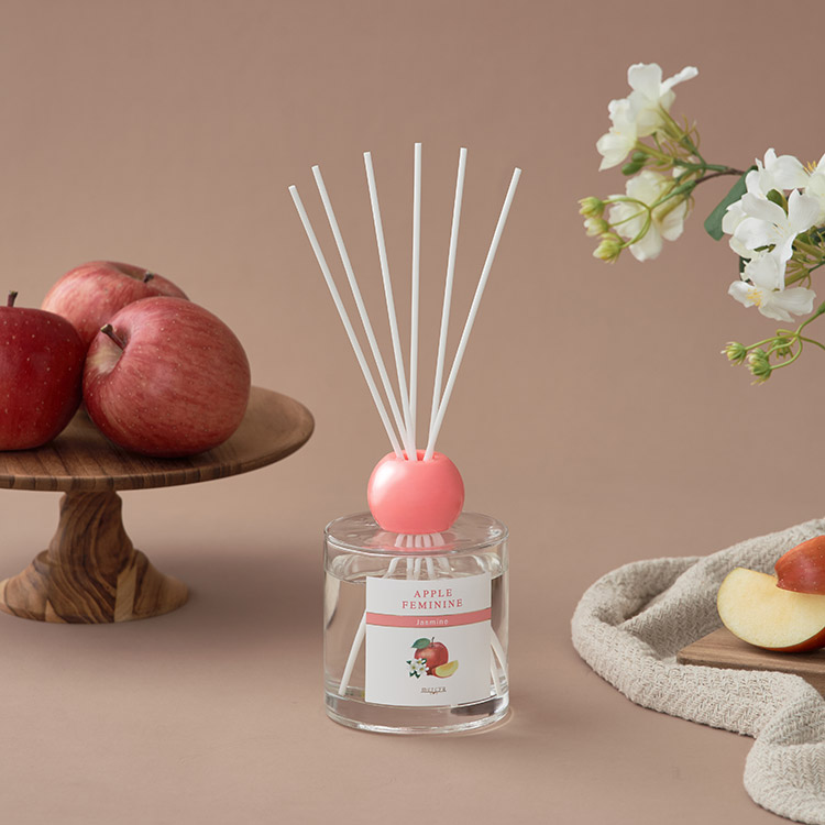 りんごの甘酸っぱい香りをベースに、気品のあるジャスミンとフリージアがほのかに漂う、華やかでスイートな香り。