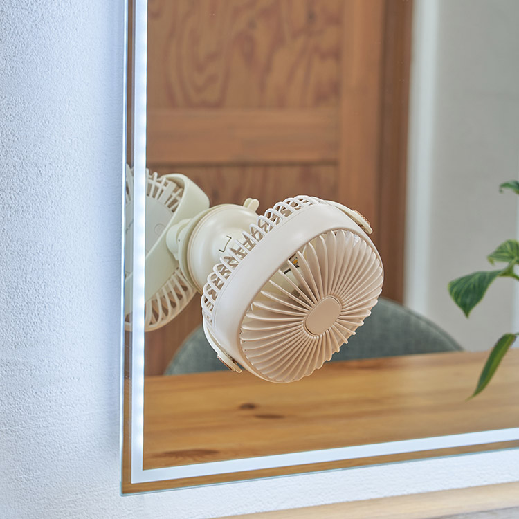 ファン部分は360°回転可能なため、使い勝手も◎。お好みの箇所へ涼風を送ることができます。