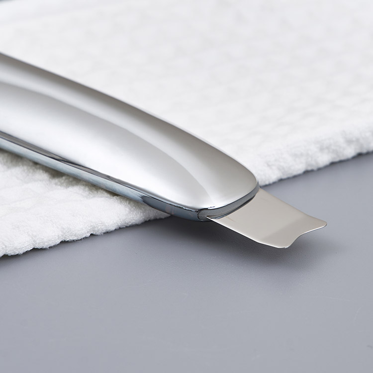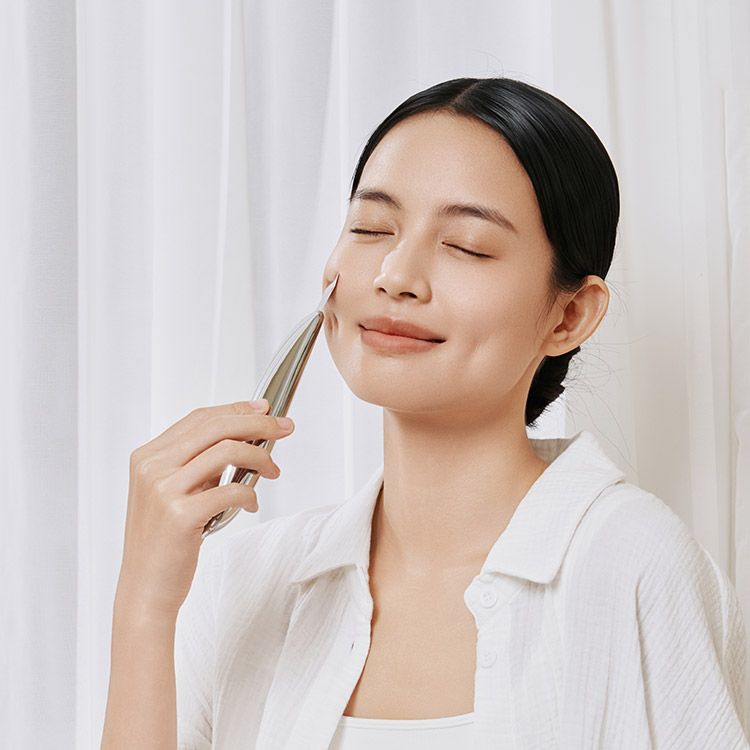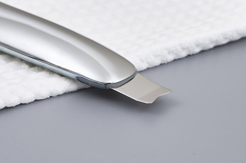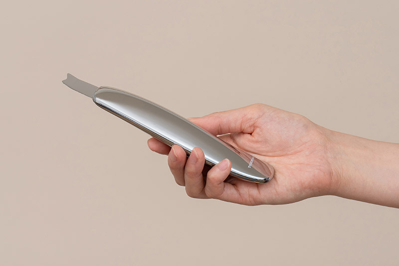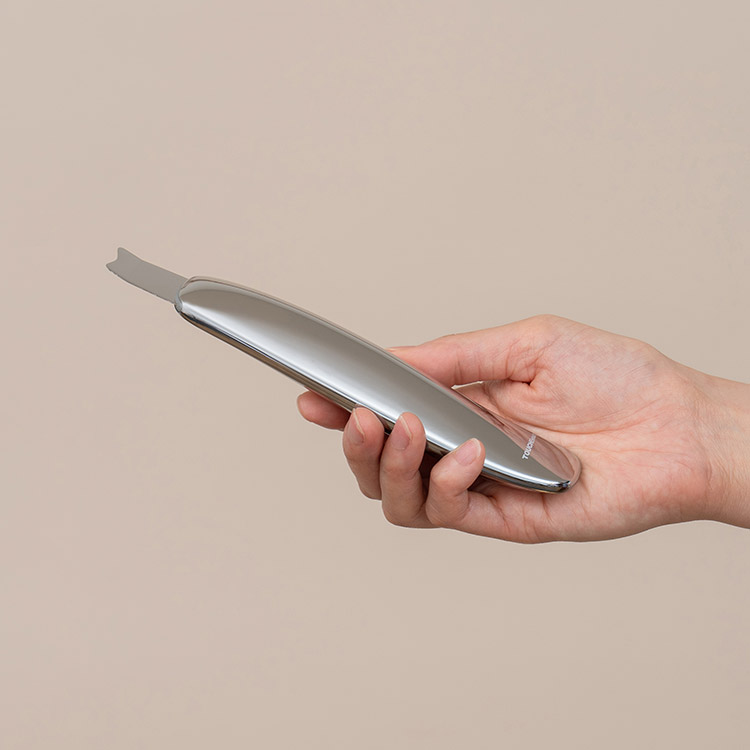 裏側は美容液導入用に最適。ブレードは顔の起伏にフィットする凹凸があり、使い心地も◎。超音波導入機能が美容液の浸透をサポートします。