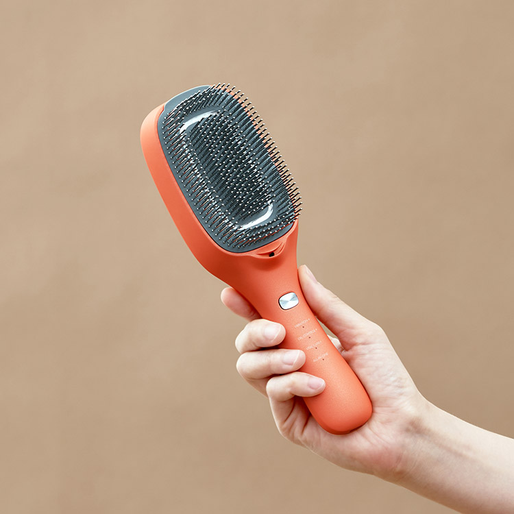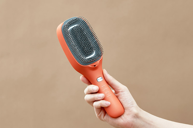 高密度に配した409本のブラシピンが頭皮に密着し、EMSや高速振動で刺激を与え頭皮をケアします。約2,000万個以上のマイナスイオンが髪を包み、潤いをキープ。美容クリニックでも採用されている赤色・青色LEDの2色同時の出力も可能な多機能ブラシです。
