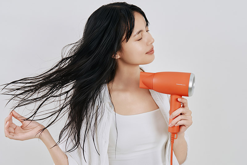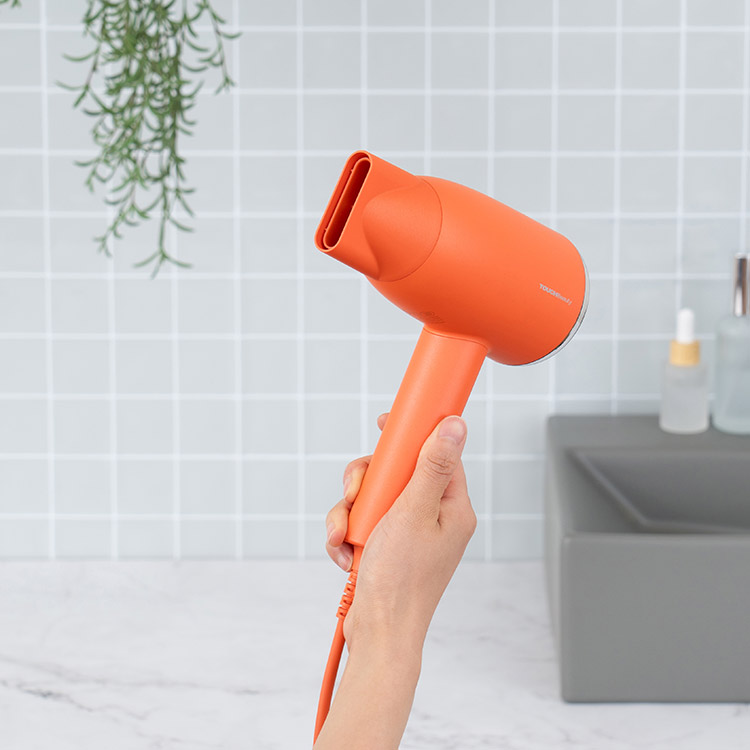 キューティクルが開いた状態の濡れた髪を、2億個の高濃度マイナスイオンが包み込み、潤いを与えながらしっかりドライ。毛先までやわらかくなめらかな髪に。